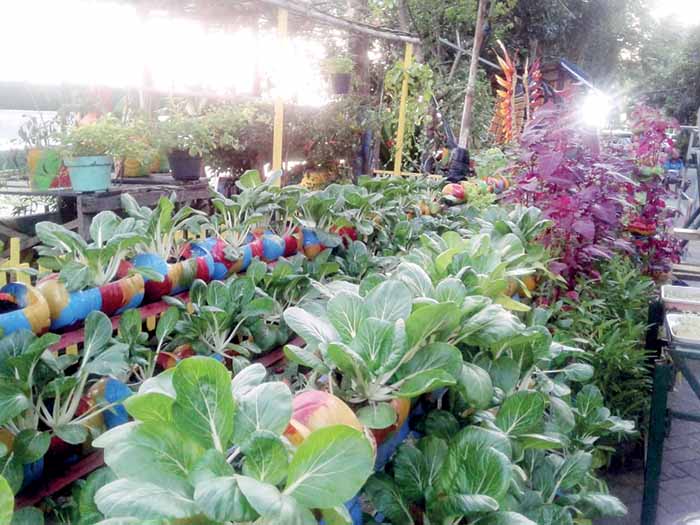 Sayur-mayur seperti sawi dan bayam merah sudah mulai panen sekitar umur 45 hari setelah tanam. Paino mempersilakan anggota masyarakat yang ingin memanen sayuran, tetapi ada syaratnya. “Di depan rak sayuran itu ada bank sampah. Warga harus membawa botol bekas, kardus, atau plastik yang tak terpakai untuk diberikan kepada bank sampah. Warga antusias memanen beragam sayuran.