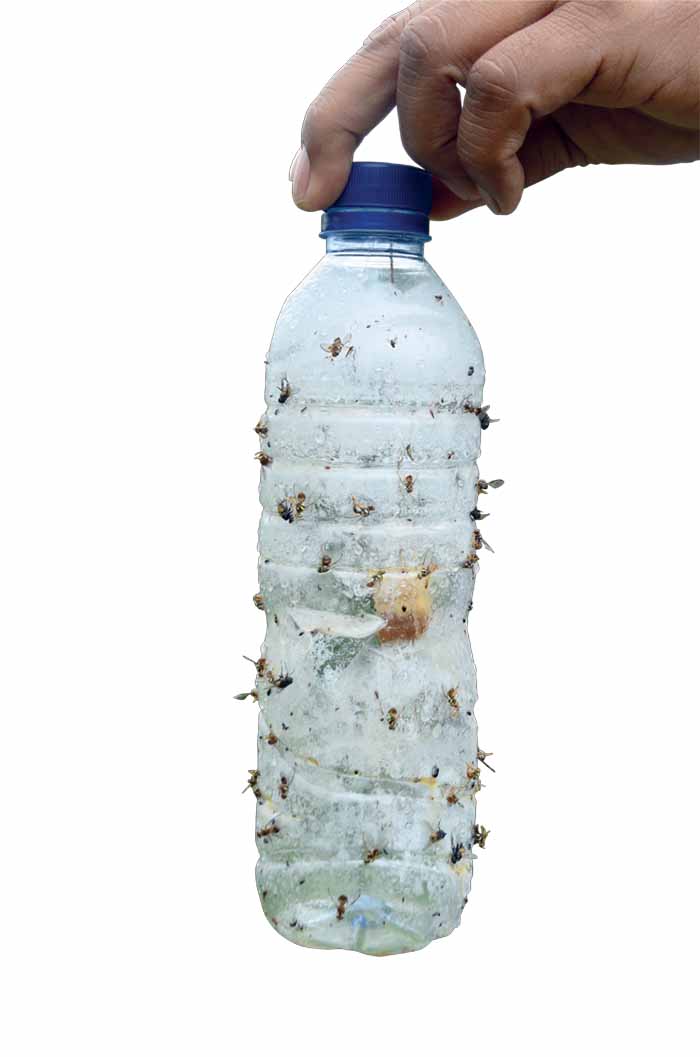 Ratmita mengatasinya dengan perangkap metil eugenol. Ia melumuri kapas dengan senyawa itu dan menggantungkannya di dalam botol plastik bekas minuman dalam kemasan yang telah dilumuri lem. Tujuannya untuk mengundang lalat buah jantan datang. Lalat jantan yang tergoda datang dan menempel di permukaan botol. Gangguan lain berupa gulma. Upaya pencegahan dengan penaburan sekam mentah di sekitar area perakaran. “Itu baru percobaan. Tenyata mampu memperlambat tumbuhnya gulma, meski akhirnya rumput bisa tumbuh di sela-sela sekam,” ujarnya. (Imam Wiguna)