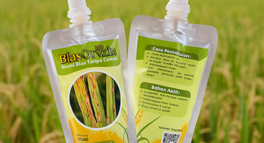 Dari sisi kemasan, BlasOryzin hadir dalam spout standing pouch ukuran 100 mL yang praktis digunakan petani. Setiap kemasan dilengkapi label petunjuk penggunaan, volume, tanggal produksi, hingga barcode edukasi pertanian.