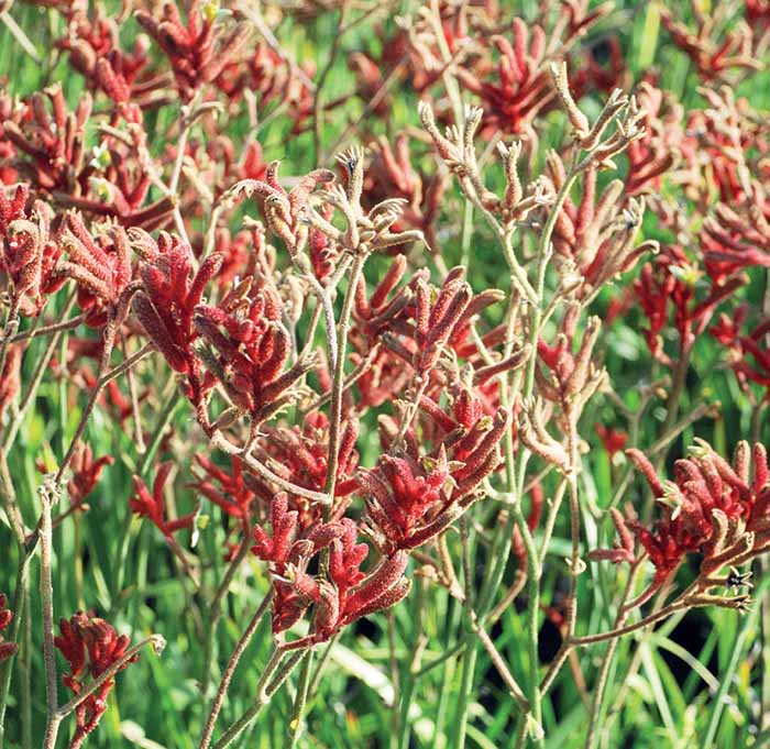 Bunga hanya mekar saat musim semi dan panas. Tanaman dorman selama musim dingin. Tangkai bunga relatif panjang seakan memamerkan keberadaan nektar dalam bunga. Tangkai panjang memberi kekuatan pada burung untuk bertengger. Harap mafhum, polinasi dibantu oleh burung. Ada 11 spesies dalam genus Anigozanthos seperti Anigozanthos flavidus, A. manglesi, dan A. viridis.