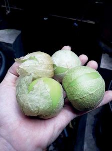 Novianto menggunakan sekam yang sudah lapuk sebagai media tanam. Ia menaburkan pupuk kandang kotoran kambing di permukaan atasnya. Tanaman anggota famili Solanaceae itu berbunga pada umur 2,5 bulan. Menurut pria 38 tahun itu buah Physalis ixocarpa siap petik 2 pekan setelah muncul bunga. Mula-mula buah dalam seludang berwarna hijau.