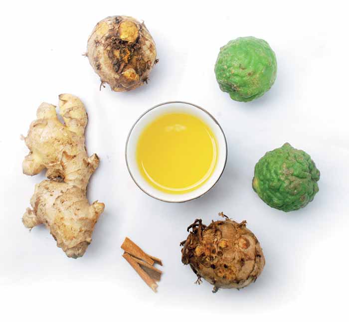 a. Parut 2 jari rimpang kunyit atau 1 butir biang kunyit kemudian seduh dengan 50 cc air panas.
