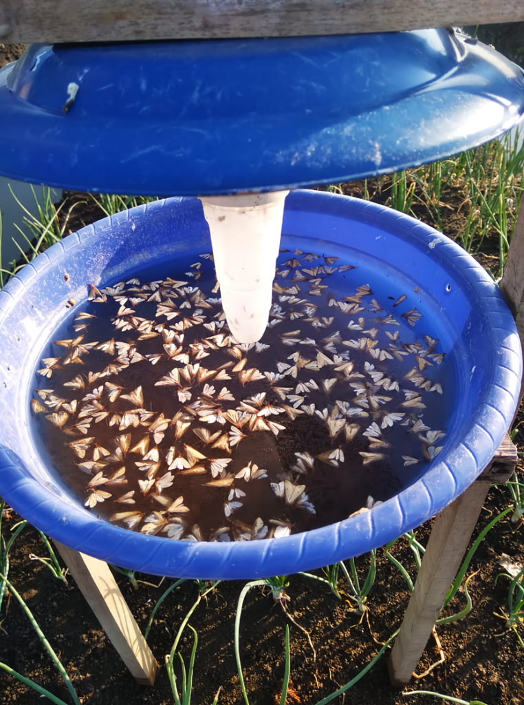 Tonny juga menambahkan beberapa hama pengganggu seperti Spodoptera exigua dan Spodoptera litura sangat merugikan petani. Kedua spesies itu sering disebut sebagai ulat grayak yang sering menyerang tanaman bawang merah. Hama itu tergolong serangga fototaktif positif, artinya bergerak mengikuti cahaya.