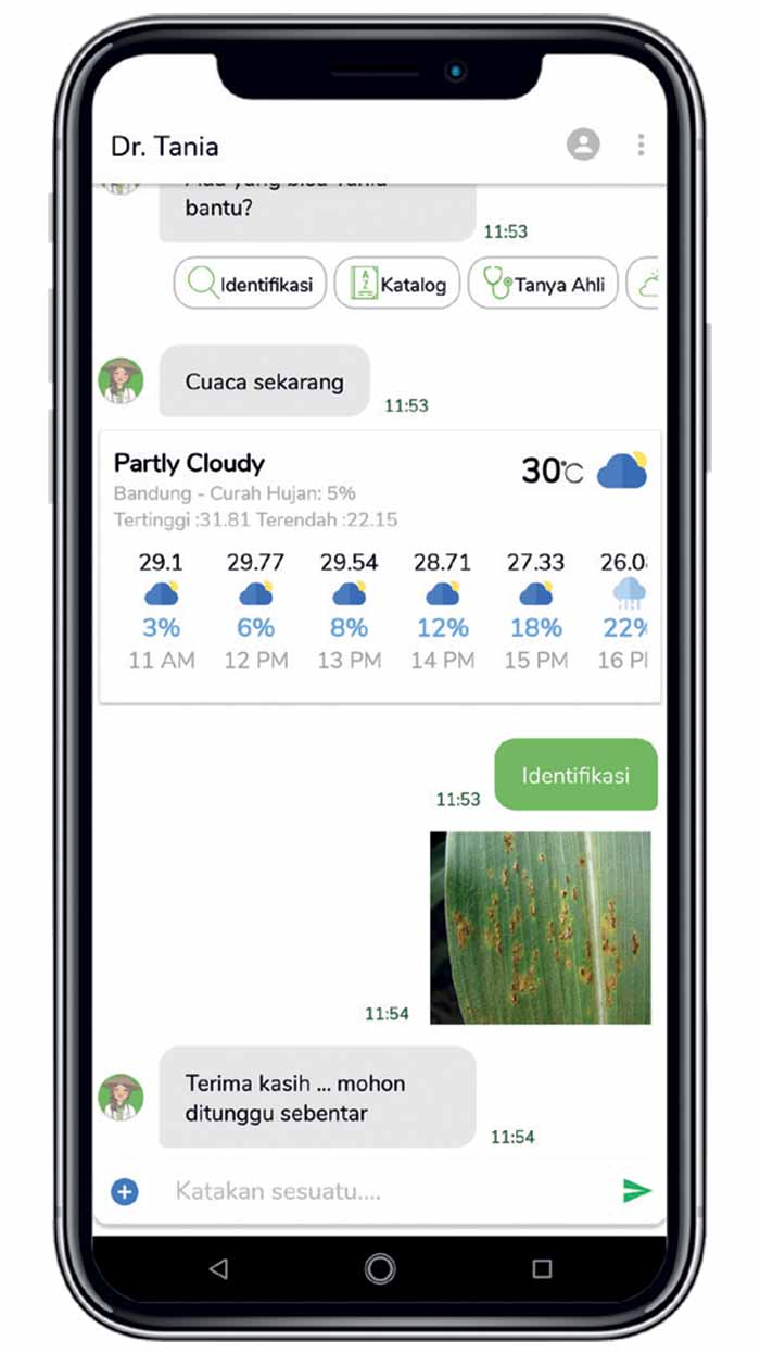 Tanaman Anda sakit? Bingung menangani? Beruntung kini hadir aplikasi di telepon genggam pintar bernama dr. Tania. Aplikasi itu layaknya dokter untuk sekitar 70 tanaman di Indonesia dan 150 jenis tanaman secara global. Kecanggihan teknologi kecerdasan buatan atau artificial intelligence (AI) membuat “dokter” mampu mengidentifikasi 33 jenis hama dan penyakit tanaman dalam 30 detik.