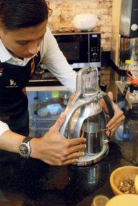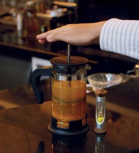 Menyajikan herba dengan peranti modern seperti french press, V60, dan rokpresso.