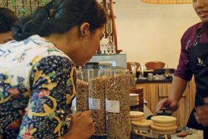 Pengunjung bisa memilih bahan jamu single origin khas daerah tertentu. (Dok. Trubus)