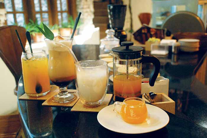 Selain jamu, pengunjung dapat memesan kuliner khas Jawa Tengah. Sebut saja lodeh ikan bawal, pindang kudus komplet, dan asem-asem kisi kembang. Desain restoran bergaya tradisional Jawa dengan ornamen ukiran dan kayu. Kafe-kafe modern itu berupaya turut melestarikan budaya konsumsi herba untuk menjaga kesehatan. (Sinta Herian Pawestri)