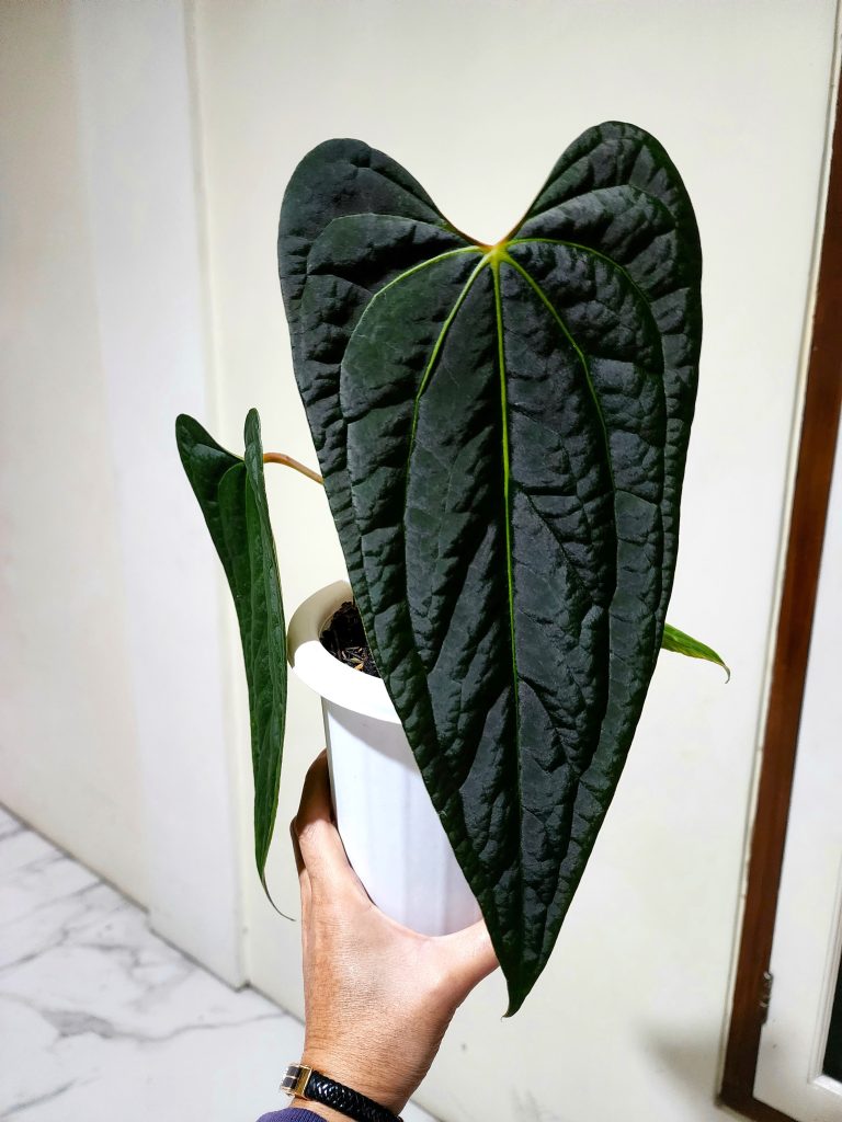 Hanya kuping gajah golden sunrise x papillilaminum darkest panama memiliki garis tulang daun yang tidak terlalu menonjol. Pun pada tulang daun tidak terdapat warna silver menyala. Yang menarik, umur tanaman belum mencapai 1 tahun, tetapi sudah menampilkan karakter yang kuat. Eddy juga menghasilkan kuping gajah baru dengan warna pekat pada 2023.
