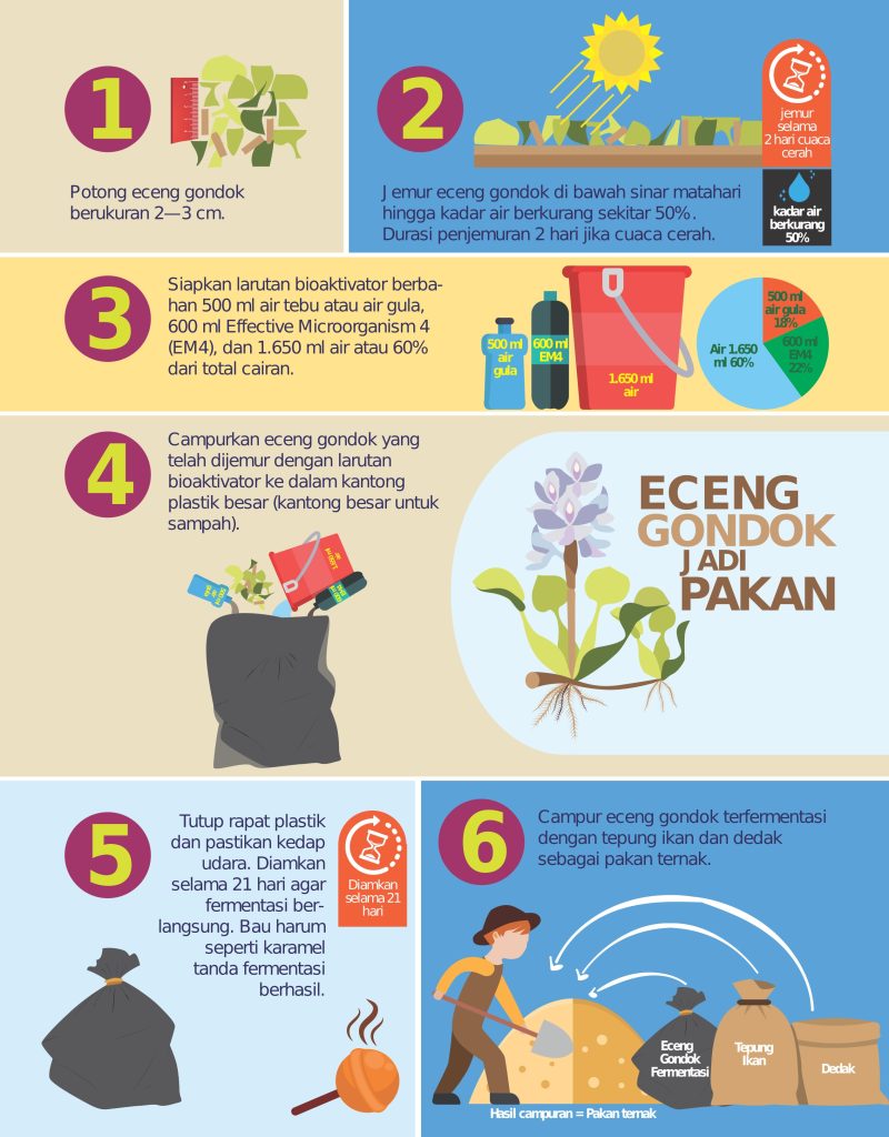 Bobot itik berumur kurang lebih 3 bulan yang mendapatkan pakan berisi campuran 75% eceng gondok terfermentasi, 3% tepung ikan, dan 22% dedak selama 3 bulan mencapai 4,9 kg.