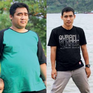 Surya Syurgana A, pelaku diet ketogenik, berbobot badan 112 kg (kiri) turun menjadi 75 kg.