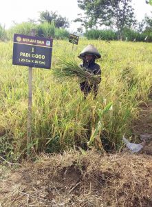 Upaya meningkatkan produksi padi gogo di lahan kering dengan pupuk hayati.