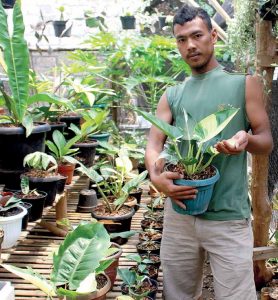 Febriadi Rahmatullah, pekebun dan kolektor philodendron di Desa Tamansari, Kecamatan Tamansari, Kabupaten Bogor, Jawa Barat.