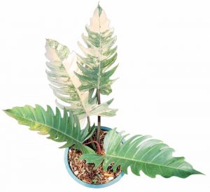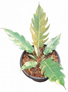 Harga philodendron setinggi 60 cm itu fantastis Rp8,5 juta. Itu memang bukan philodendron biasa, tetapi variegata. Daunnya menarik dengan perpaduan empat warna yaitu hijau, kuning muda, merah, dan putih. Lazimnya daun philo berwarna hijau polos. Keistimewaan lain, pola variegata daun muncul di tiap helai daun dengan perpaduan warna yang berbeda.