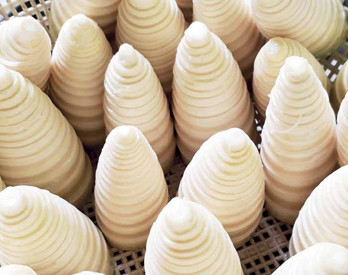 Menurut Diah rendahnya kandungan asam sianida membuat bambu tabah tidak memerlukan pengolahan selama itu. Cukup cuci, kupas, kukus, lalu kemas. Singkatnya proses itu sekaligus menjaga higienitas produk. Maklum, rebung pascapemotongan akan mengalami browning. “Bagian yang cokelat tidak enak dimakan,” kata Diah.