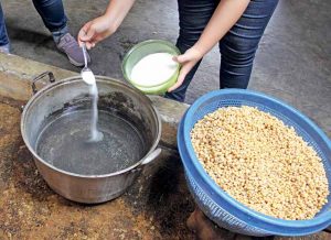 Setelah pengasaman kedelai, kapang tumbuh optimal. Sementara patogen tidak dapat berkembang karena suasana lingkungan yang masam. “Setiap mikroorganisme memiliki ceruk pH yang paling nyaman. Pada pH rendah kapang tumbuh baik, sementara mikroorganisme pengganggu justru tertekan,” kata Hanny. Ia memanfaatkan Glucone Delta Lactone atau GDL sebanyak 1% sebagai bahan pengasam.