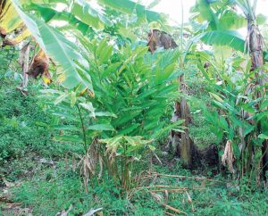 Menurut Samsuludin, pisang adalah naungan ideal. Begitu panen pisang dengan menebang tanaman, maka anakan Musa paradisiaca itu menjadi pengganti sebagai penaung. Setelah panen pisang, Samsuludin mencacah batang lalu menyebar cacahan itu di sekitar rumpun kapulaga “Batang pisang membantu mempertahankan kelembapan tanah, terutama saat kemarau,” kata Samsuludin.