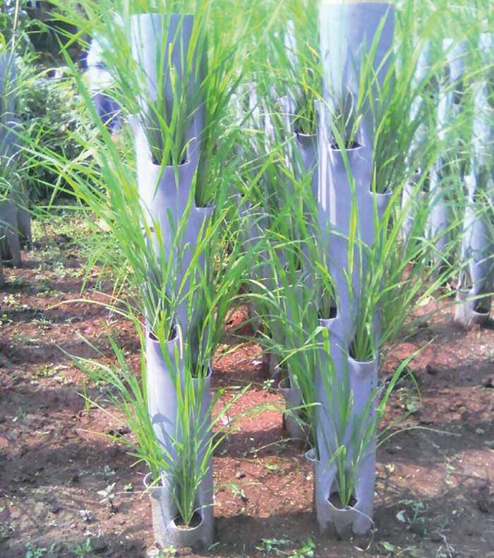 “Selain hemat lahan juga bisa memberdayakan warga setempat,” ujar Kyai Tanjung, sapaan akrabnya. Ia menanam benih padi pada pipa itu. Sebuah pipa setinggi 1,5—2 m dan berdiameter13 cm terdiri atas 12 lubang tanam. Jarak antarlubang tanam mencapai 20 cm sesuai dengan tinggi padi dewasa. Arifin menanam 1 benih per lubang tanam. Di lahan 150 m² ia membangun 600 tiang pipa untuk budidaya padi.