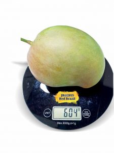 Ciri khas buah red brazil berkulit hijau dengan semburat merah kalau terpapar sinar matahari penuh. Di kediaman Jusuf bobot buah red brazil antara 400—600 gram. “Rasa daging buahnya manis segar dan bertekstur lembut dengan serat yang halus. Jenis ini juga tergolong genjah dan rajin berbuah walaupun hanya tanam di pot,” katanya.