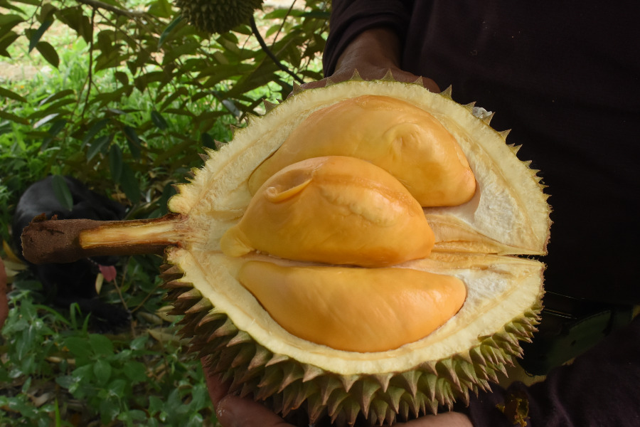 Durian identik dengan musim tertentu. Namun, pengalaman berbeda datang dari Kebun Durian Tamora di Kecamatan Baros, Kabupaten Serang, Banten. Berkat pengelolaan nutrisi organik, kebun milik M. Hengki Massie mampu memanen durian hingga 4—5 kali dalam setahun, bahkan di luar musim puncak. “Di Kebun Durian Tamora bisa sampai 4—5 kali panen durian,” kata Hengki.