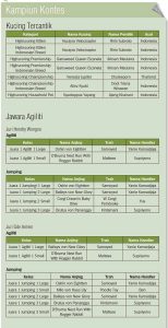 Gelaran kontes lainnya yang tidak kalah menarik ialah kejuaran ketangkasan anjing. Pada gelaran itu tidak ada anjing yang mendapat gelar best of best (BOB). Menurut juri asal Bali, Ir. Gde Armen Widyasthana, M.M., syarat BOB anjing sudah mencapai level agility 2 dan jumping 2. “Syarat lain BOB adalah saat kejuaraan berlangsung pada kelas agiliti dan jumping mendapat nilai excellent,” kata pria yang juga ketua Klub Agililiti Indonesia (KAI) itu.
