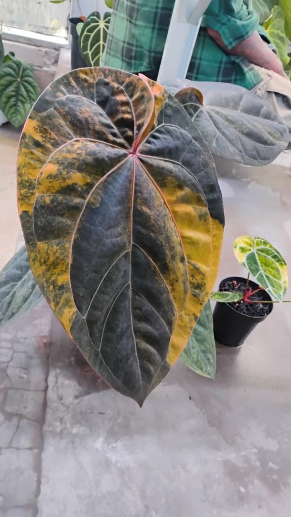Anthurium ‘Kraken’ koleksi Raka Nanda Saputra itu sangat unik. Karakter fisik daun tanaman itu memiliki cekungan atau lekukan (sinus) di pangkal daun yang turun. Normalnya sinus pada daun anthurium naik. Daunnya juga keriting dan seperti ada insang. Itulah anthurium “ciptaan” Raka. Anthurium itu merupakan hasil perkawinan silang antara anthurium x one x portillae dengan anthurium muchlis. Raka menyukai hasil silangan yang berdarah anthurium muchlis.