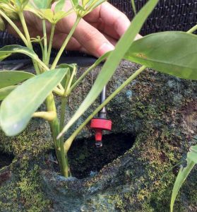 Pipa itu terhubung dengan pompa air yang memiliki pengukur waktu otomatis. Alat pengukur itu akan mengatur waktu penyiraman. Pompa mengalirkan air selama 20 detik. Pompa aktif 4 kali dalam sehari. Satu unit pompa dapat dipakai untuk taman dinding hingga berukuran 25 m x 10 m. Menurut Hezty kebutuhan air dan nutrisi pada taman dinding bakal tercukupi.