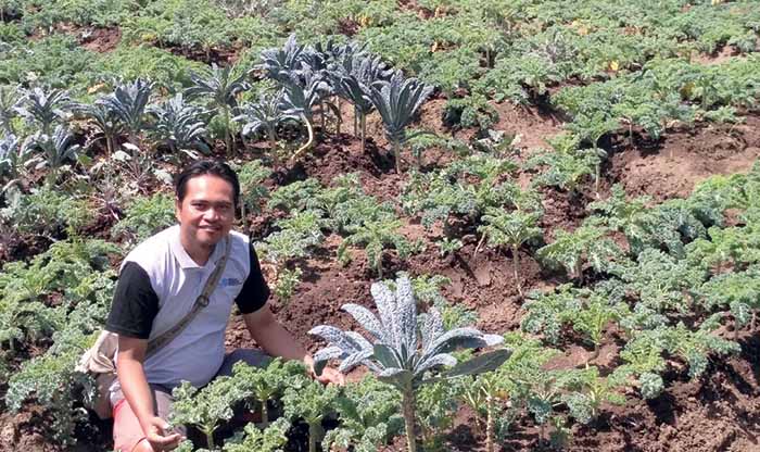 Trubus — Sumber pendapatan Rakhmad Hardiyanto, S.T. bukan hanya dari jambu kristal. Di lahan yang sama ia juga membudiayakan sayuran organik seperti kale. Ia lazim memanen 100—120 kg kale per pekan dari lahan 1 hektare. Petani muda itu menjualnya Rp100.000—Rp150.000 per kilogram. Dengan kata lain Hardi mencetak omzet minimal Rp1 juta—Rp1,5juta setiap pekan dari penjualann kale.