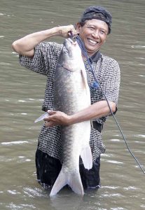 Ikan dewa Tor tambroides berbobot 20 kg hasil tangkapan di Kalimantan Tengah. (Dok. Haryono)