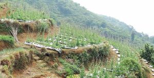Lahan itu belum pernah ditanami sejak 1993. Hanya semak belukar yang tumbuh di lahan itu. Area kebun juga terisolir dari budidaya konvensional yang biasanya jor-joran menggunakan pestisida. Kondisi lahan seperti itu cocok untuk budidaya secara organik. Namun, butuh waktu dan tenaga ekstra untuk mengolah lahan. Apalagi kondisi lahan juga miring hingga 45o. Ia lalu membuat terasering untuk mencegah lahan erosi.