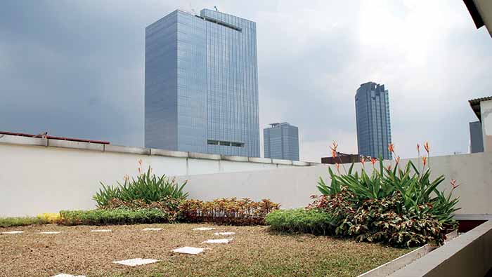 Taman atap bukan sekadar kebutuhan estetika, tetapi juga upaya meningkatkan kualitas lingkungan. Menurut Marketing and Communication Manager PT Onduline Indonesia, Yustiar Reissa Siregar, taman atap menyerap karbondioksida dan polutan lain dari udara. Lapisan media tanam yang lembap menahan kenaikan suhu akibat penyinaran matahari dan menurunkan kebutuhan penggunaan pendingin ruangan. “Taman atap juga mampu meredam kebisingan hingga 8 desibel (dB) sehingga ruang kerja lebih senyap,” kata Yustiar. (Hanna Tri Puspa Borneo Hutagaol)