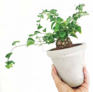 Sugita menanam tanaman berbonggol itu pada media tanam subur berupa campuran 50% pumis, 20% sekam, dan 30% humus. Tanaman tumbuh sentosa dalam pot berdiameter 30 cm. Arsitek alumnus Universitas Kristen Petra itu menyimpan tanaman koleksinya di teras rumah tanpa atap pelindung. Ia tidak khawatir hujan akan merusak penampilan bonggol elok itu. Sebab, ia memberikan media tanam yang tepat.