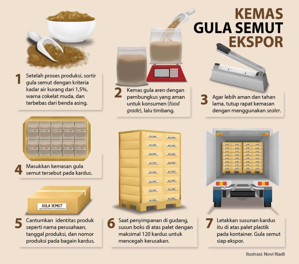 Olah karena itu butuh penanganan khusus pascaproduksi gula aren. Berikut langkah Kemas Gula Aren Ekspor.