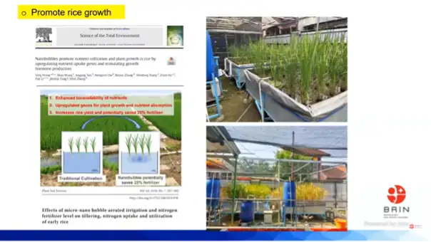 Aris juga menjelaskan konsep ultra fine bubble (UFB) yang memiliki diameter kurang dari 1 µm dan dapat menghasilkan Reactive Oxygen Species (ROS). ROS ini merangsang perkecambahan endogen yang penting bagi pertumbuhan benih.