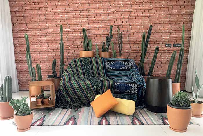 Trubus — Belasan kaktus dan tanaman sukulen menghiasi kediaman pesohor Titi Dwi Jayati. Ia memesannya dari Urban Little Garden di Kota Depok, Jawa Barat, untuk properti foto keluarga bertema kaktus dan tenun ikat. Pot terakota tampak menyatu dengan latar belakang dinding bata merah. “Kapan-kapan mau foto dengan kaktus yang banyak tanpa sofa, bangku, atau bantal,” kata Titi DJ mengomentari fotonya di media sosial Urban Little Garden.