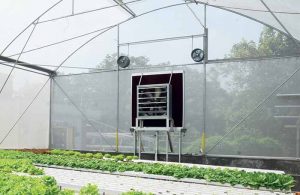 Kipas dalam rumah tanam melancarkan sirkulasi udara.