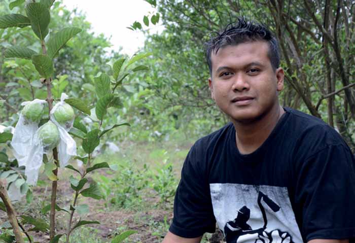 Semula membuka lapak di tepi trotoar, kini Muhammad Yusron Ismail mengebunkan 2 ha jambu biji getas sekaligus memasok 5 ton buah per pekan.