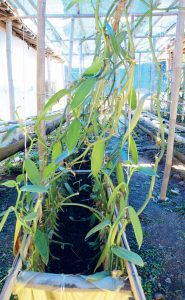 Sistem tanam rapat atau high density planting pada vanili di kebun Susanto di Kabupaten Jember, Provinsi Jawa Timur.