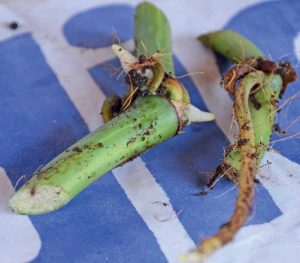 Padahal, “Dalam 1 m sulur ada 4—8 ruas,” kata pekebun vanili di Wuluhan, Kabupaten Jember, Abu Darin. Itu sebabnya banyak pekebun membibitkan dengan setek pendek yang hanya terdiri atas 1—2 ruas atau sepanjang 10—25 cm (lihat boks Setek Pendek halaman 123). Pertimbangannya murni efisiensi, demi mendapat bibit sebanyak mungkin. Metode pembibitan setek pendek menghasilkan 4—9 tanaman baru dari sulur setek sepanjang 1 m alih-alih hanya 1 tanaman baru dengan cara lama.