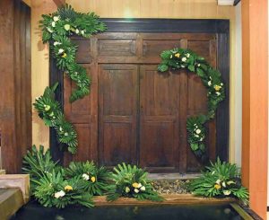 Raras juga mempersiapkan aneka bunga seperti bunga jengger ayam kuning dan hijau, mawar putih, solidago hijau, dan babys breath sebagai materi untuk mempercantik rangkaian. Ketua Dewan Pimpinan Pusat Ikatan Perangkai Bunga Indonesia (DPP IPBI) itu menuturkan, penggunaan daun dalam rangkaian flora selayaknya jangan asal tancap. Perangkai harus mampu menemukan sisi keindahan daun sehingga menghasilkan rangkaian yang memesona.