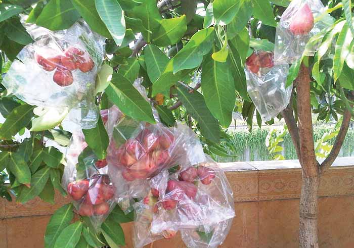 Selain itu, pemilik tabulampot pun mesti mengenal karakteristik masing-masing tanaman buah. Misal tunas ujung pada srikaya jumbo harus diibuang agar bunga muncul. Perlakuan pada anggur beda lagi. Setelah panen, pemilik mesti menggunduli semua daun Vitis vinifera. Willy memperoleh semua informasi itu dari praktisi dan pedagang tabulampot serta pengalaman.